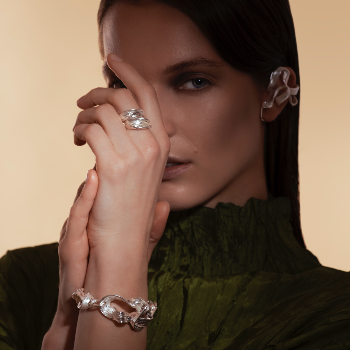 Nacre Julia Ear cuff - designová náušnice bílá - 925/1000 ag 4,43 g nebo 14kt / 18kt au 7,43 g